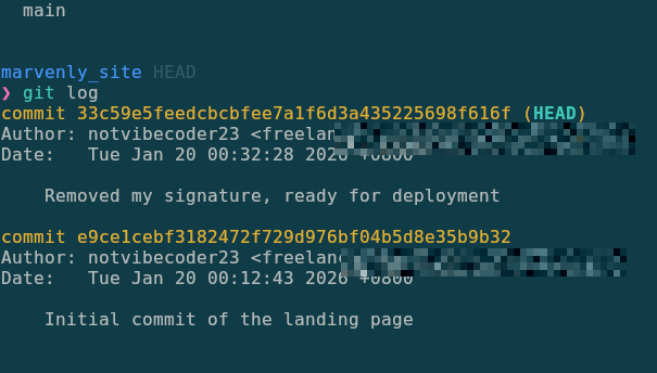 And finally, to find the email used by the freelance developer, all you have to do is clone the repository, and check the logs yourself
