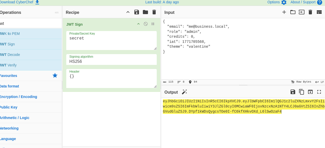 - With cyberchef, you have a recipe called JWT-Sign. Use it